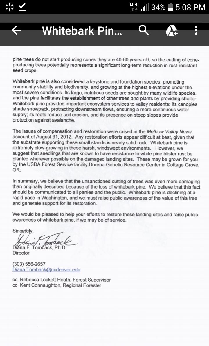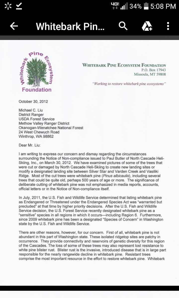 Here is how the White Bark Pine tree folks viewed the illegal cutting of White Bark Pine trees by NCH. At the time those trees were listed as a sensitive species and now federally listed as threatened. Note that the recent Cedar Creek fire spared many of the White Bark Pine trees on the very same Ridge where NCH cut them down.