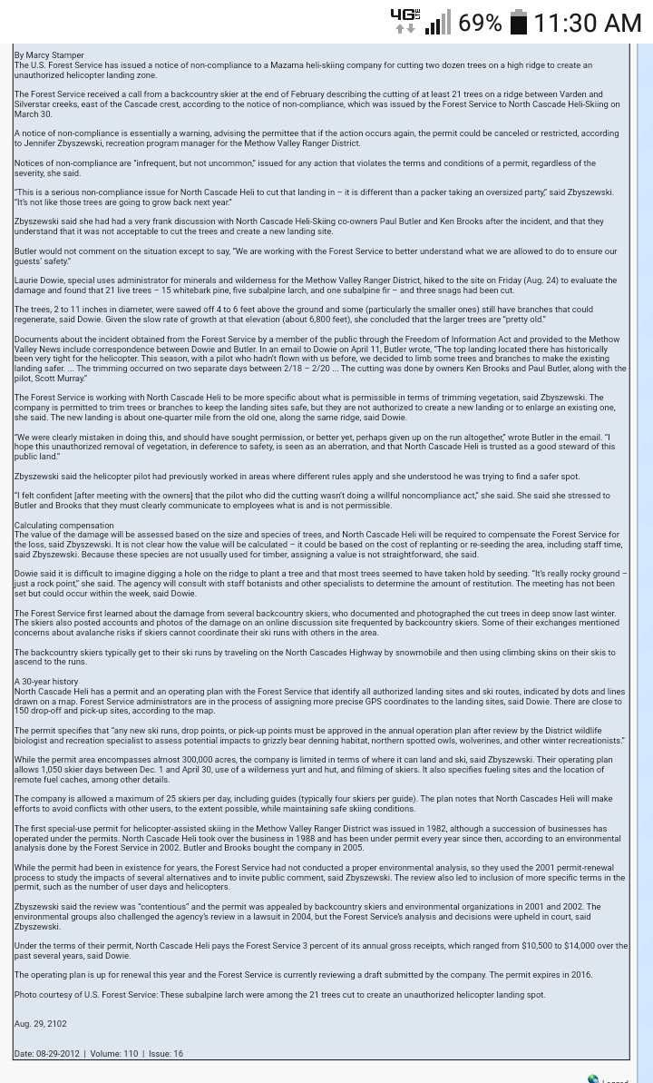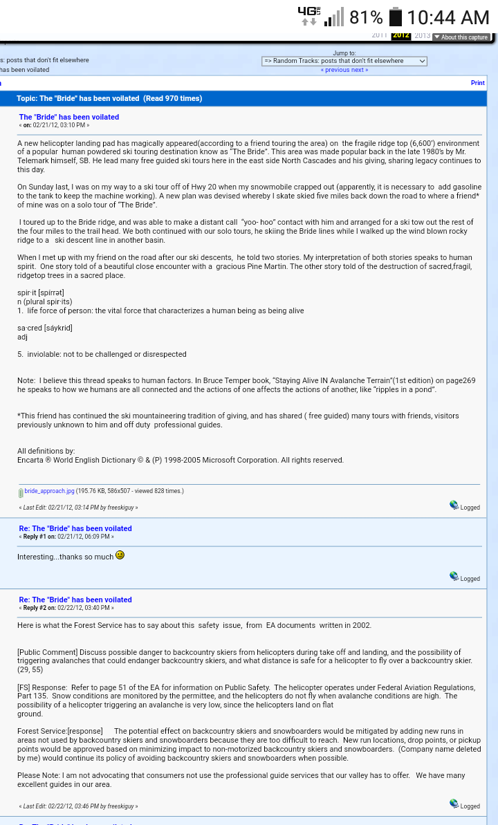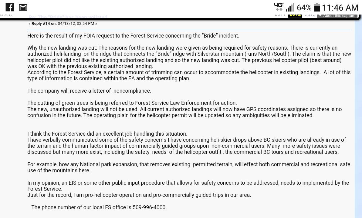 So the FS had delt with the issue as described in Marcy Stampers Methow Valley news article. I reported the results on Turns all year, posting photo's and relevant documents that I had received through a Freedom of Information Act request. Below are more of myTAY posts at the time. At the bottom of each post I write that the FS did a good job resolving the issue and that I am in favor of heli ski and guided touring.