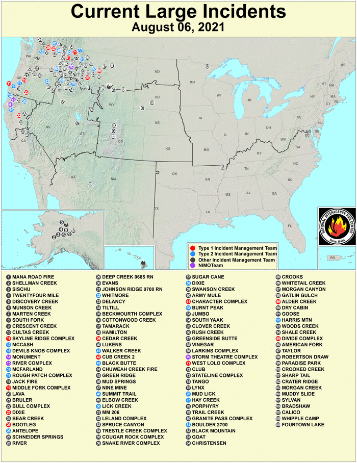 8/6 Here's a map showing were all the large fires are currently.