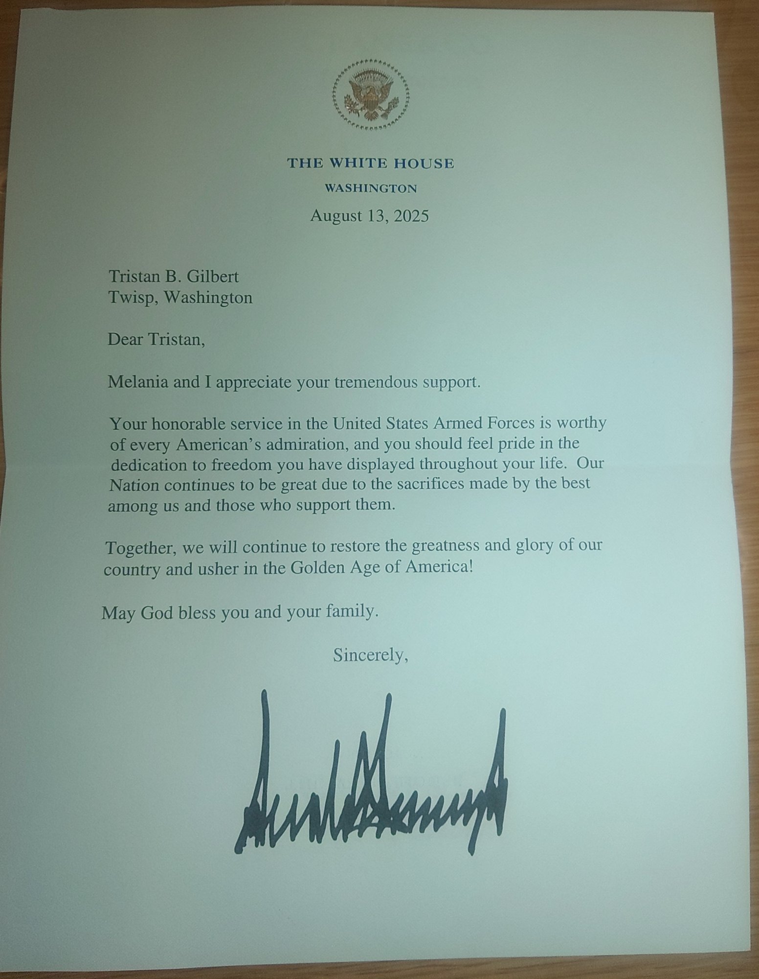 I am so glad that you have stepped up to be the superhero president that so many are crying out for. I don't have to put my life on the line the way you do. It is amazing to me that you can function under so much stress as being the focus of so many. I am a disabled veteran from the Persian Gulf era. I like the simple life of being home with my family with adventures every day. We walk the wilderness trails and drive the roads watching for wildlife.