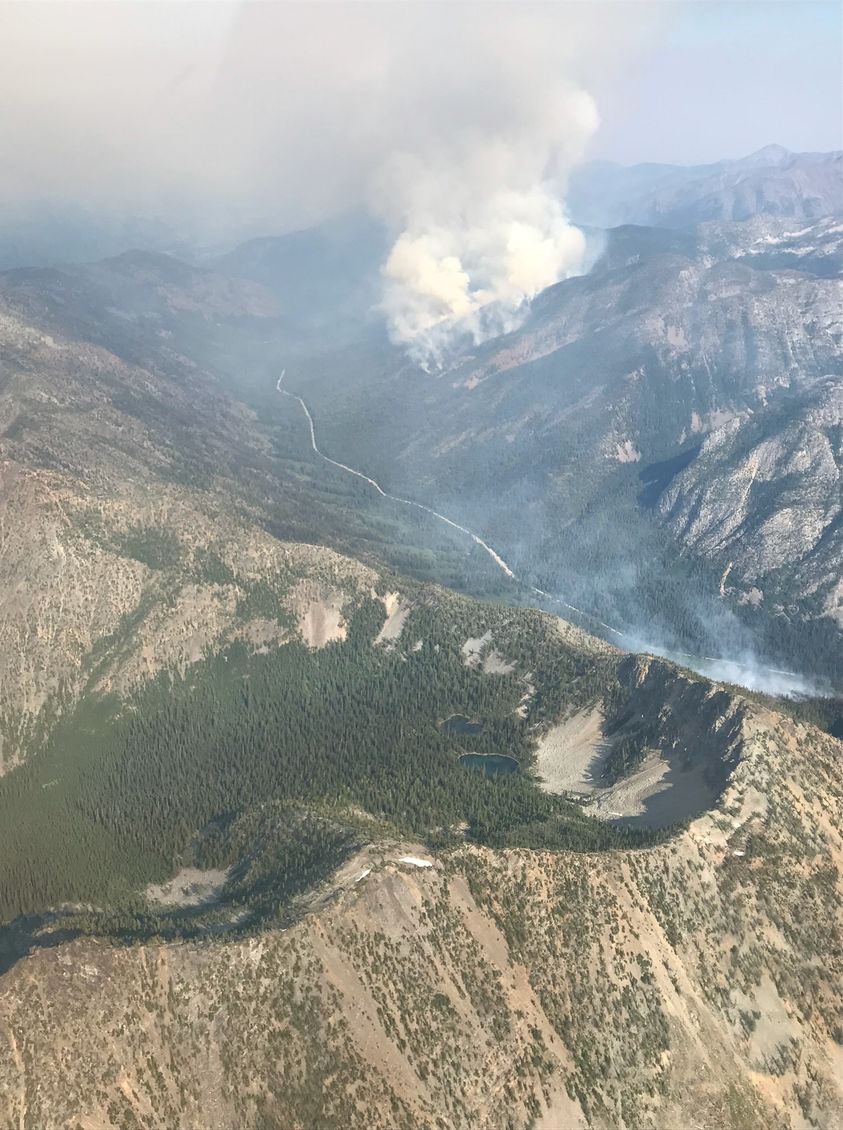 The Methow Valley was blanketed in smoke much of the day limiting use of aerial resources. Heavy lift helicopters were able fly in the late afternoon and provide assistance to firefighters with water bucket drops.