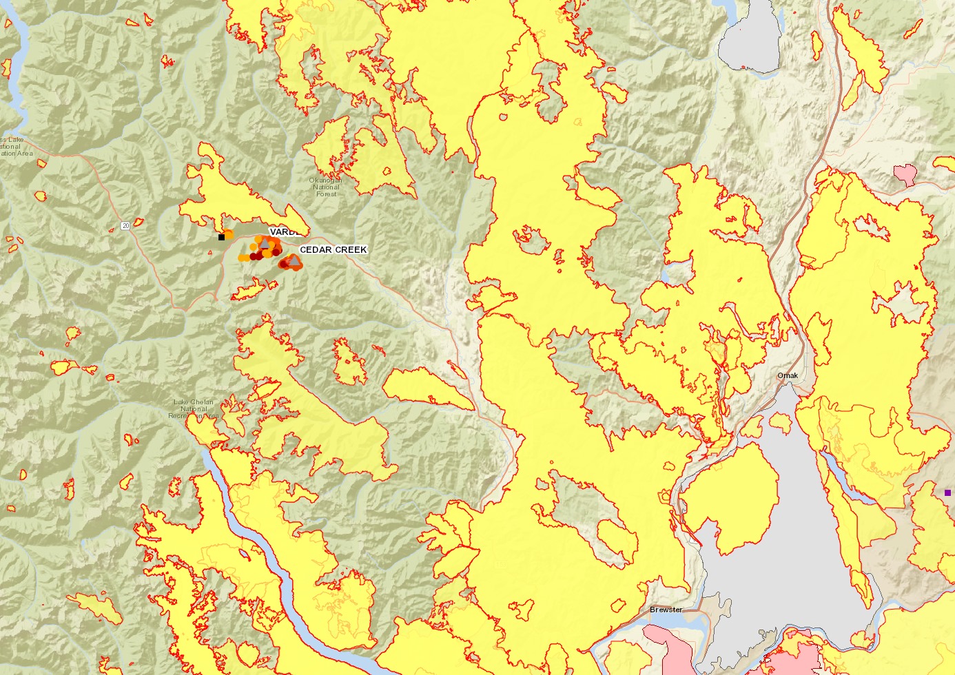 Cedar Creek and Varden Fires are south of SR 20.