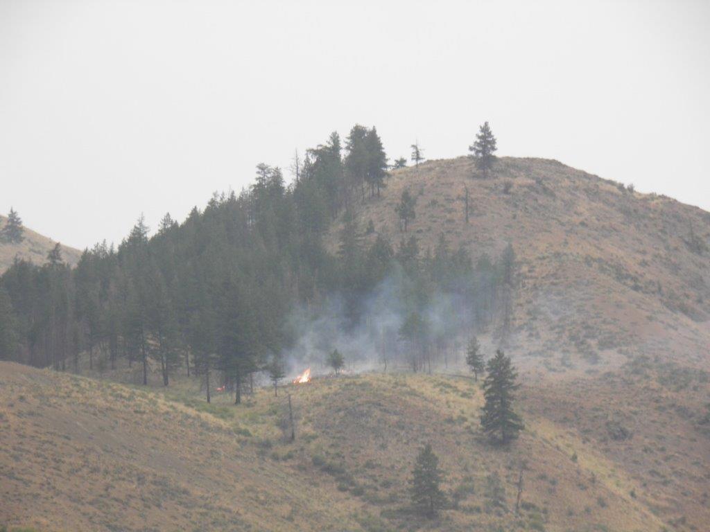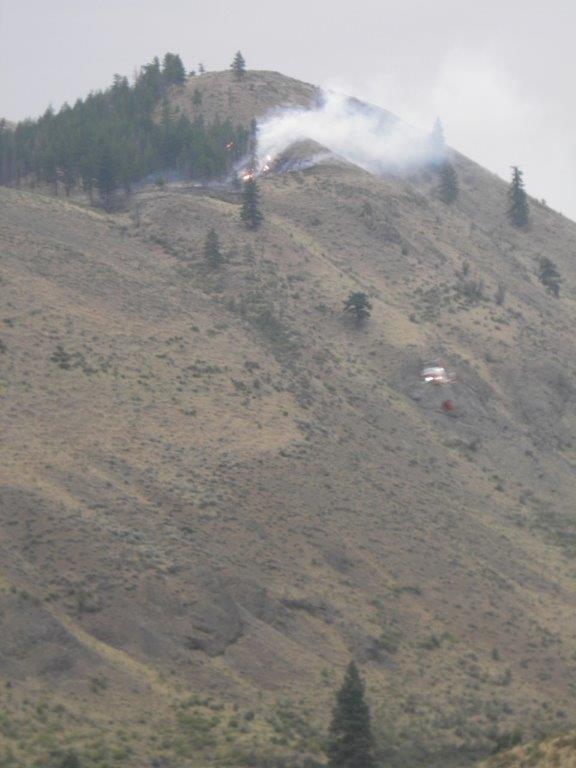 Small lightning strike fire... couple of acres... They hit it hard with a copter and crews are on it forming lines around it. Looking like it may be under control. Was on top of hillside south and east of the lake. More pics on Methow Valley Fire Infi facebook page.