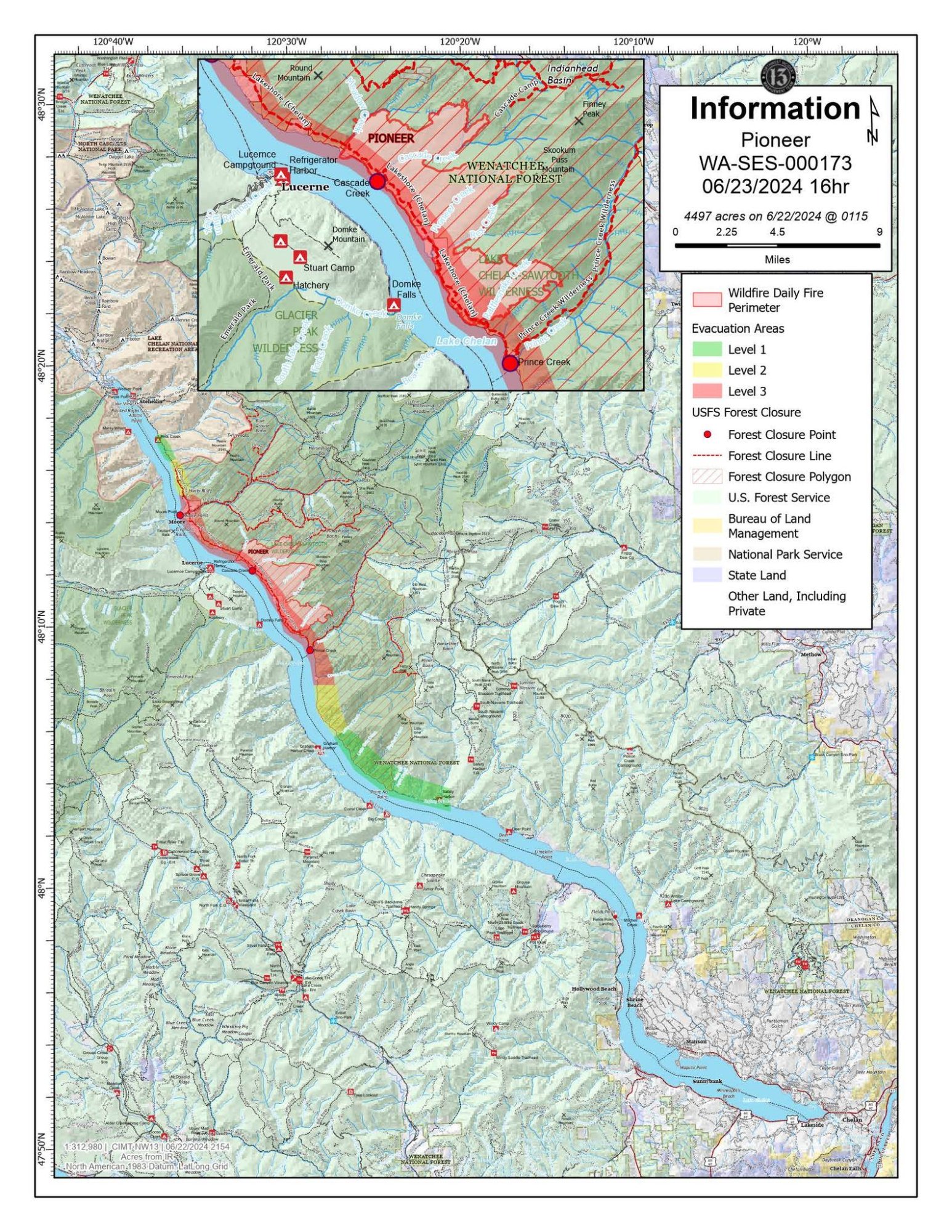 EVACUATIONS: Evacuation levels have not changed since Sunday, June 16. Please visit County of Chelan, Washington for the most current information on evacuations.