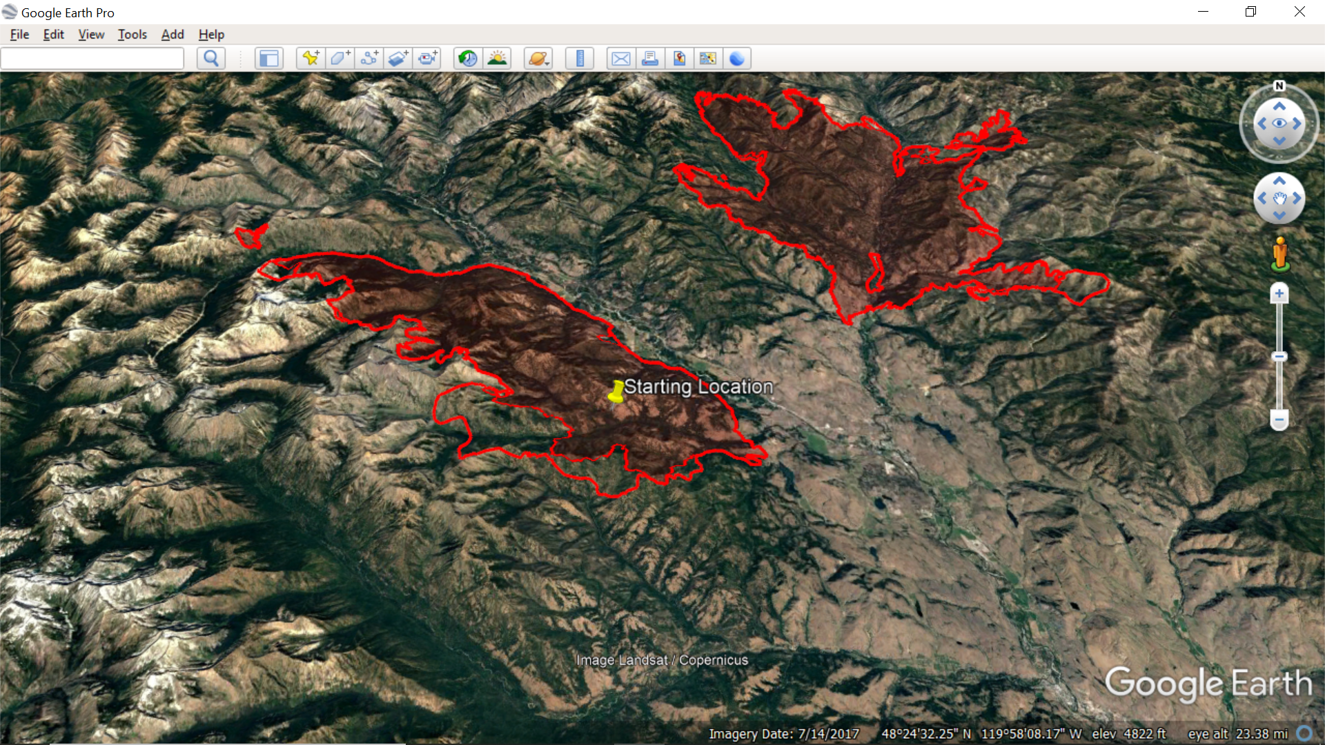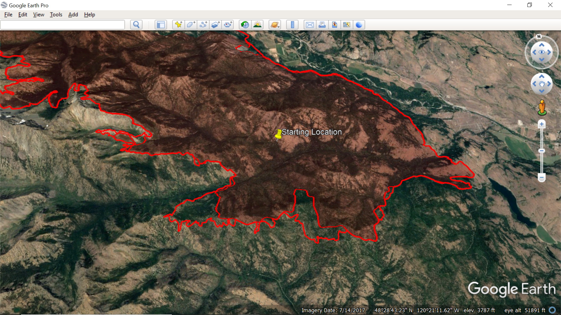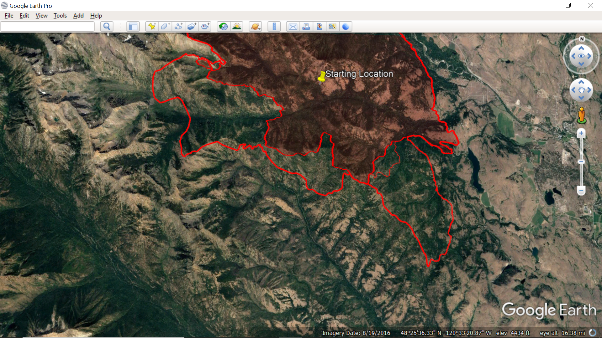 Evening NFIC Fire Perimeter file draped in Google Earth... Showing growth over the morning shaded sections...