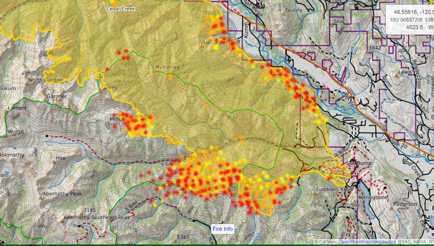 Saw some social media posts exhorting fire fighters to: “hammer” the fire out; to just “extinguish” it; to stop “guiding it” towards the Twisp river drainage. Would be wonderful to have the ability to actually extinguish or redirect the fire. A gentle reminder that we’re on Mother Nature’s turf. She calls the shots. Weather, topography, fuel. Human’s can only marginally alter the fuel condition in the effort to contain and starve the fire…and we wait for rain. Hats off to the men and women working the fire. Dedication, experience and professionalism abounds. But let’s not loose sight what is possible and even reasonable. Expectations need to be realistic.