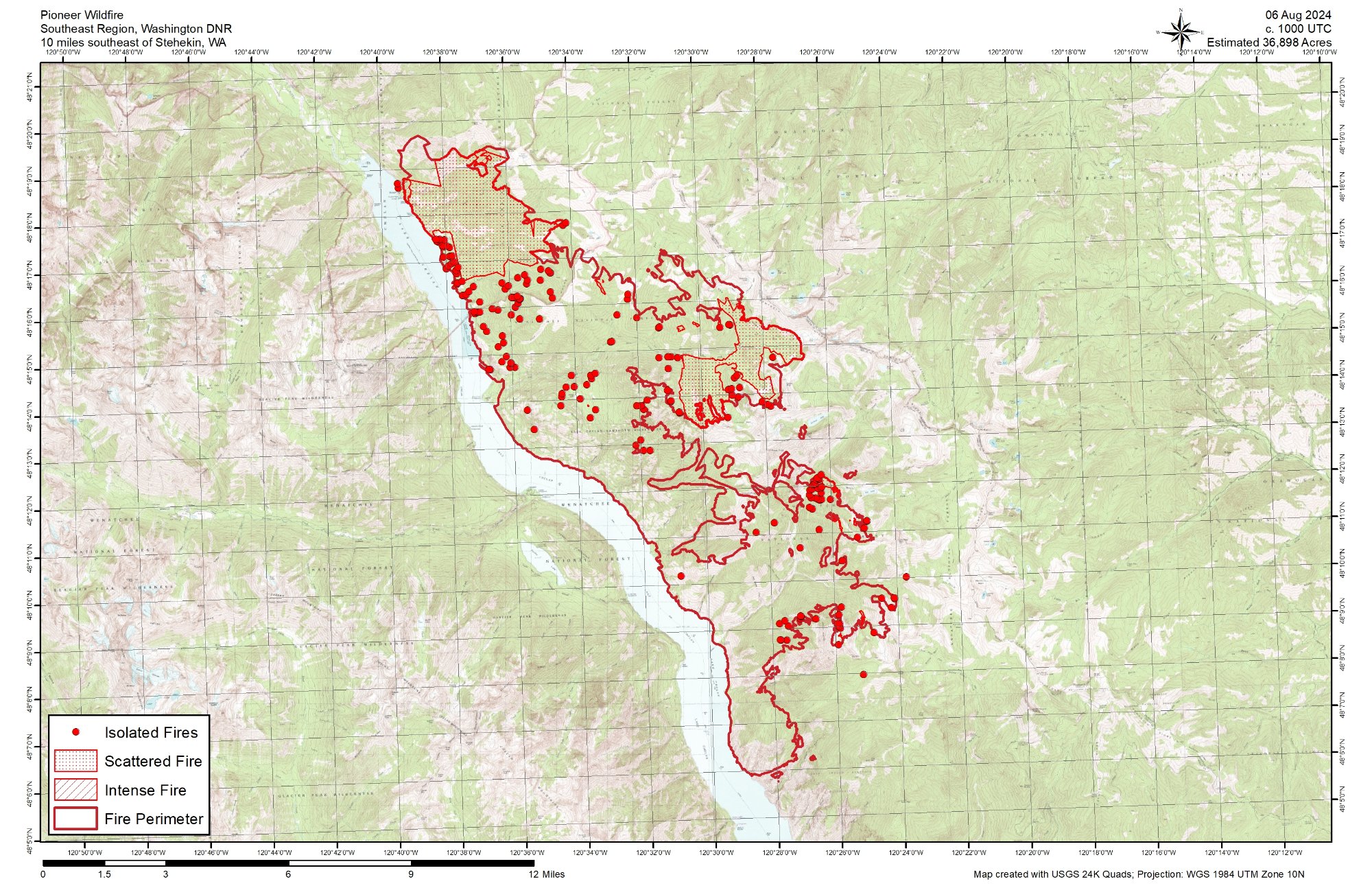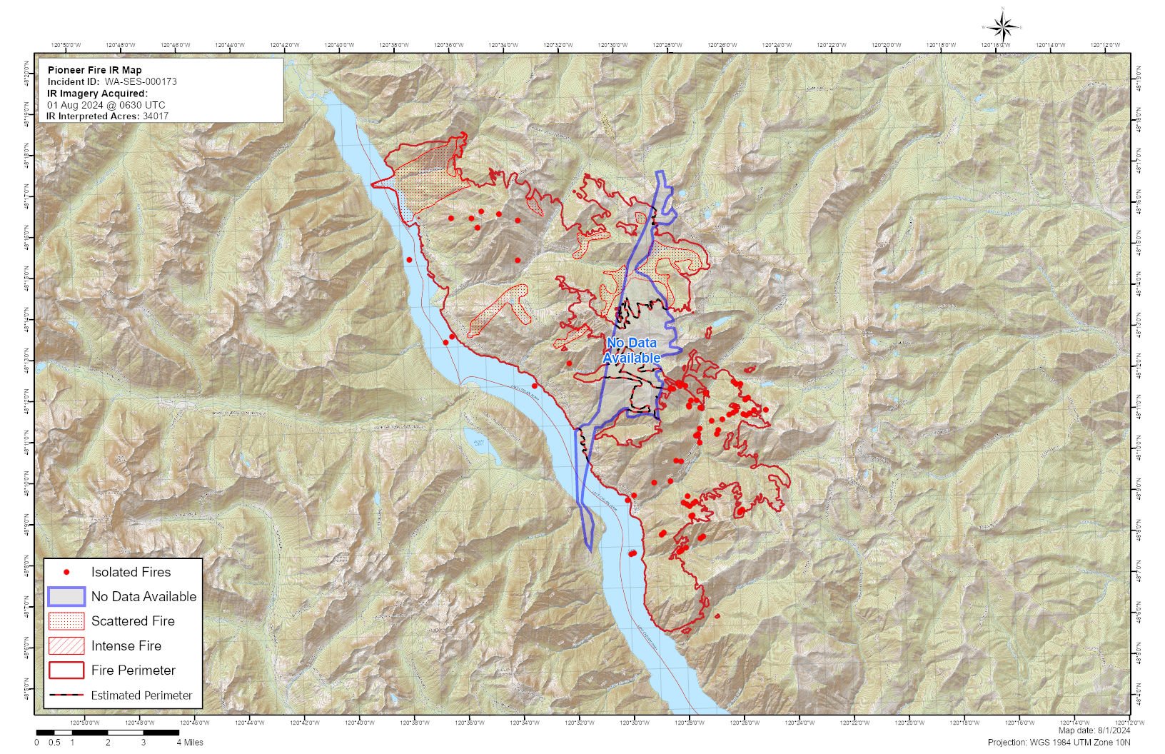 WEATHER AND SMOKE: An excessive heat advisory has been issued for Saturday and the Weather Service has issued a red flag warning for increasingly hot, dry, and unstable weather conditions through Sunday. However, winds are not expected to be notable throughout the weekend. Smoke impacts from the Pioneer Fire will be most noticeable around Lake Chelan throughout the day, with some relief expected in the afternoon. See Current Smoke Outlook for North Central Washington (airfire.org) for information about smoke and air quality.