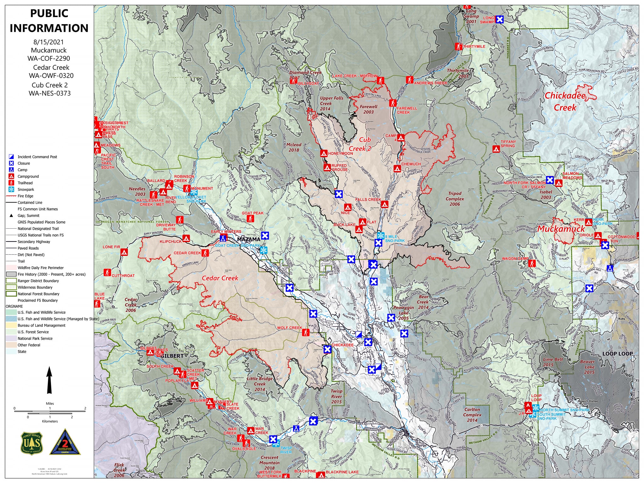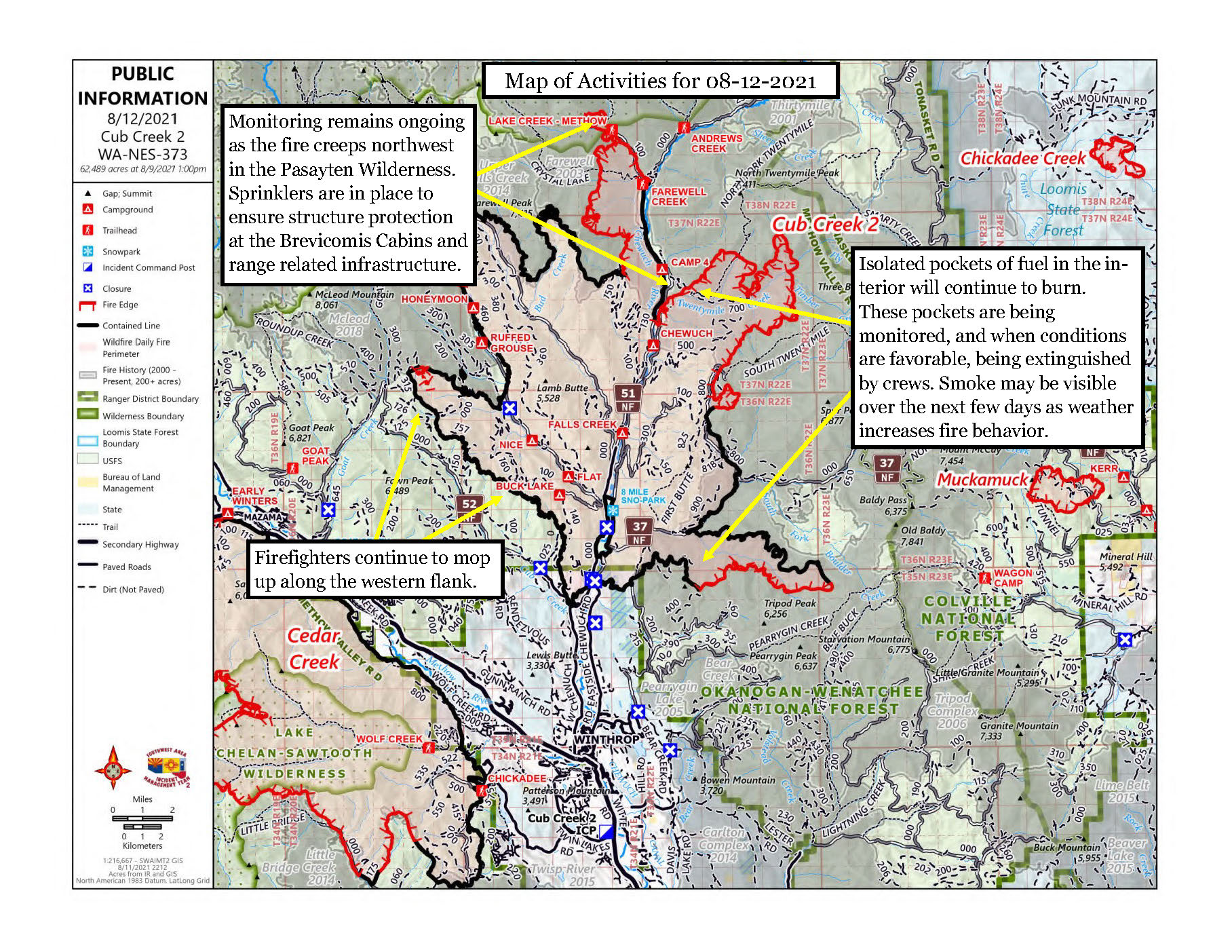 Winthrop, WA — The Cedar Creek, Cub Creek 2 and Delancy Fires are burning on the Okanogan-Wenatchee National Forest and public and private lands within Okanogan County.