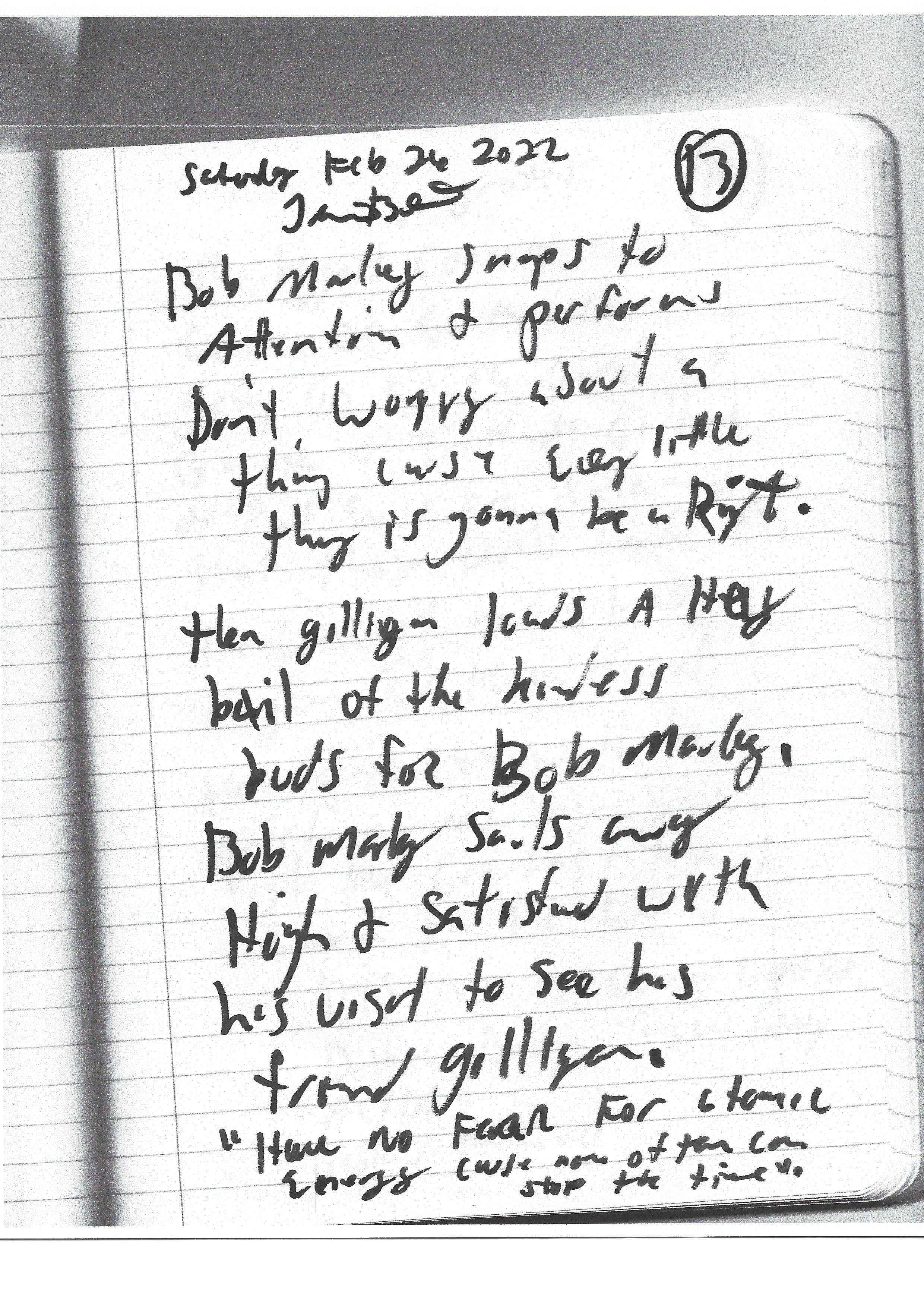 I went to Hollywood California this cold spell and visited with my friend Bob Marley. He and Terry Hardesty are spending time together working up licks on the guitar for the big show when I arrive in 50 years or so. It's just a flash in eternity and tickets are going fast. Terry and Bob are making promises of a duet with me and Glenn Campbell singing Rhinestone Cowboy. Stage fright and a bad lisp have hindered my professional music career in this lifetime. I am only willing if Terry Hardesty will sing The Gambler with Kenny Rogers.
