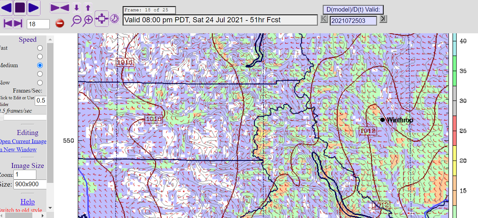 Air Quality: Smokey conditions persisted most of the day with levels reaching unhealthy levels in the Winthrop area. Communities further down valley also experienced unhealthy smoke conditions including down into the Okanogan Valley. Tonasket and Omak experienced unhealthy air throughout the day. Oroville received heavy smoke from Canada and the Methow Valley.