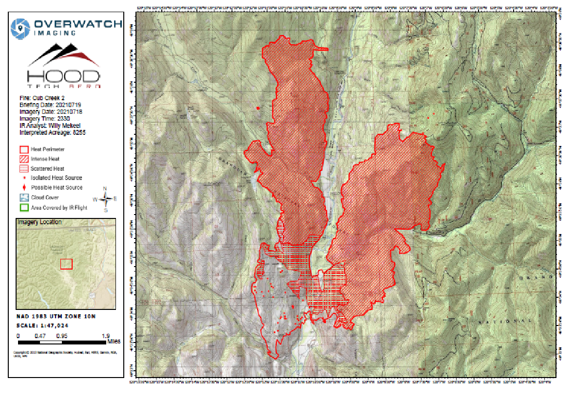The Cub Creek 2 Fire is estimated at 8,255 acres with a 5% containment. The fire is burning north pushed by diurnal winds during the day and south during the late evening and morning. Please only call 911 if flare-ups are near structures.
