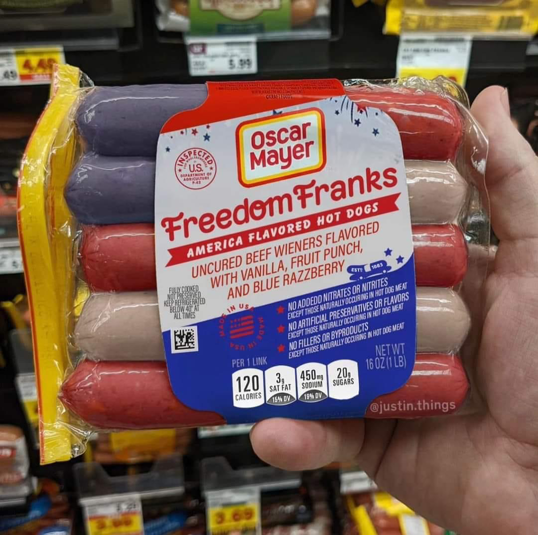 Does someone really sit around thinking; “I KNOW….we NEED weenies packaged like a flag!!!”
