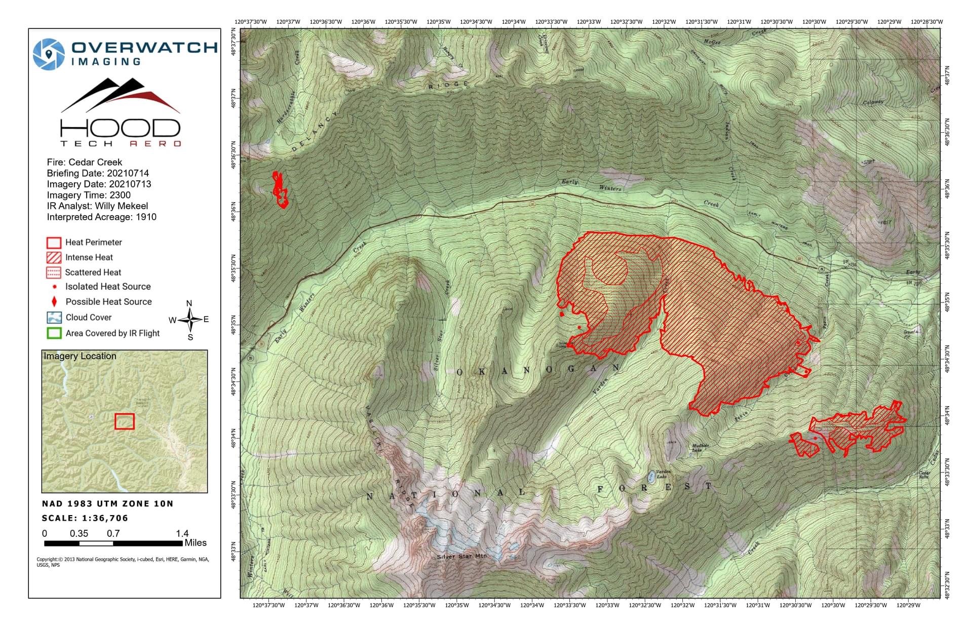 Cedar Creek and Varden fires have merged.as shown on the infrared heat detection map taken July 14, 2021.