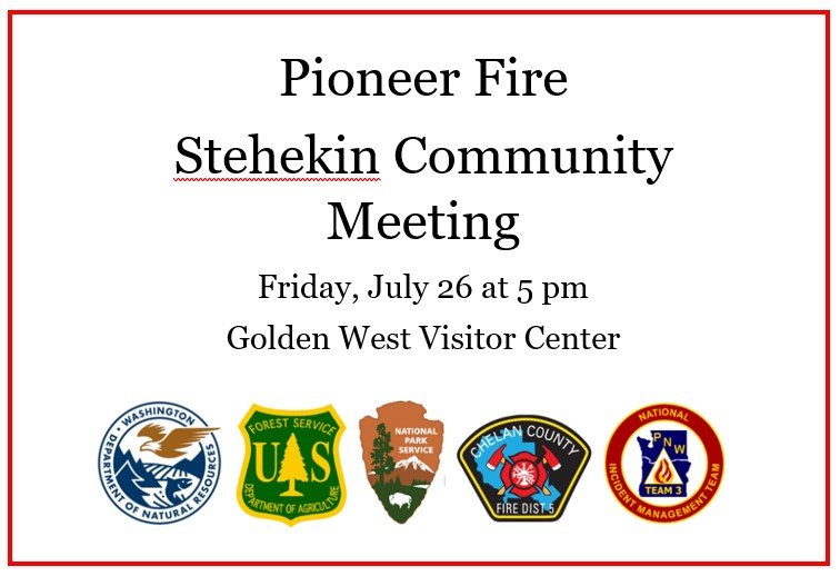 Pioneer Fire Community Meeting in Stehekin on Friday, July 26 at 5pm. Meeting will be at the Golden West Visitor.