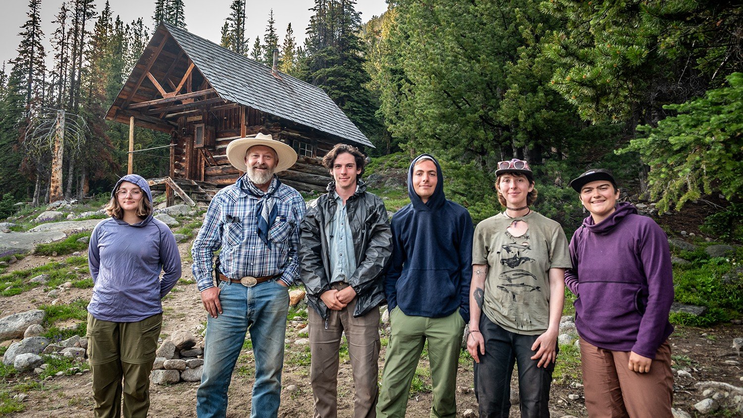 Our Eastern Pasayten Trail Crew (from left to right): Emily Peterson, BCHW volunteer Vince Stremler, Caden Hoyt, Thomas Shaw, Allison Gunther, and Sophie Manning.