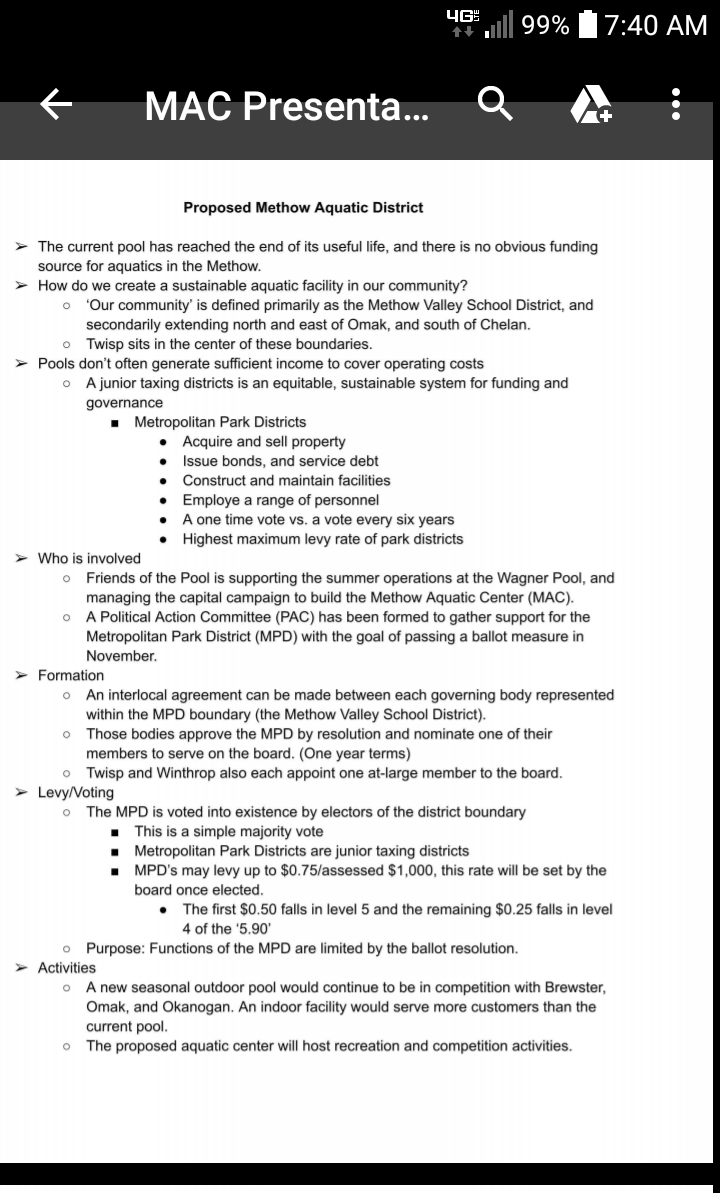 Post is FALSE information... You do not need a Metropolitan Park District to keep a pool in the Methow Valley.