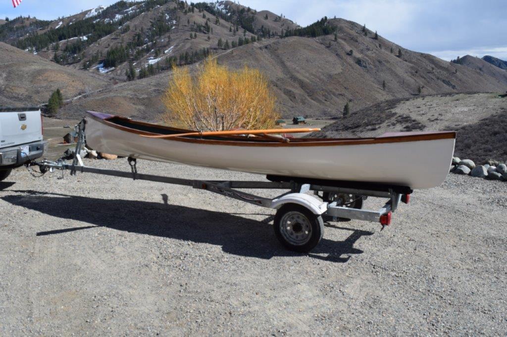 1. 17 ft. custom rowing canoe with two seats, Hand built of strip cedar and laminated with fiber glass. Natural wood trim and seats with marine grade paint and clear coat. Very solid, safe and fast to row. One flick of the oars and she moves along pretty quickly. The original design was for transporting the captain and crew to and from the ship at anchor in New England. It has become very popular in the islands, lakes and the Oregon Coast.