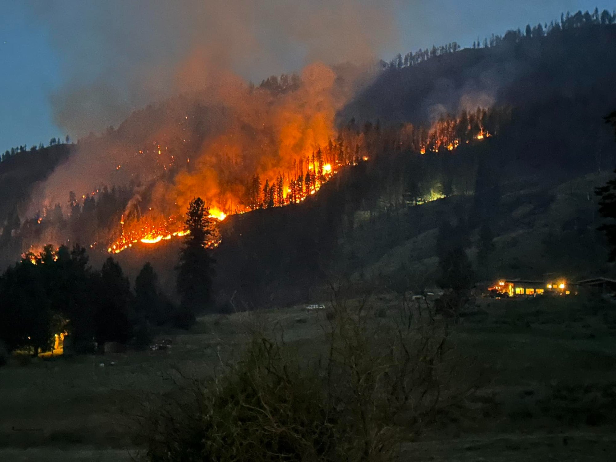 Unknown if the fire has crested the ridge yet.
