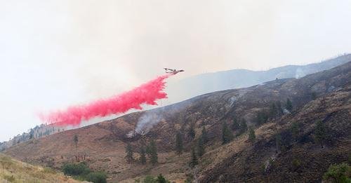 Constant aircraft traffic. Bucket helicopters and fire retardant planes.