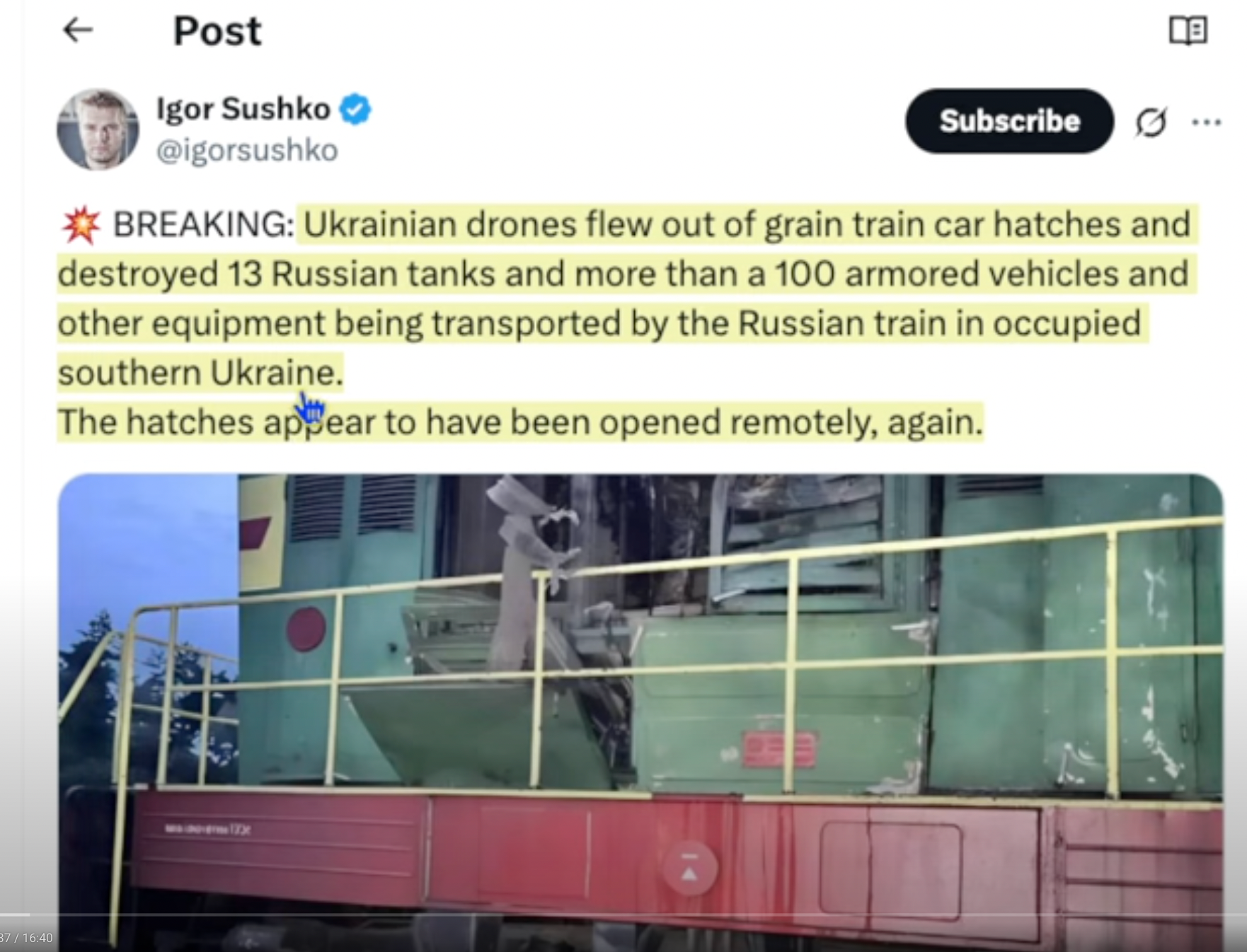 I'm fervently hoping the US Military is studying it right now. No reason you couldn't do the same thing here and get away just as clean.Rideback wrote: Mon Jun 02, 2025 6:12 am The Ukrainian operation will be studied in military textbooks for decades to come.