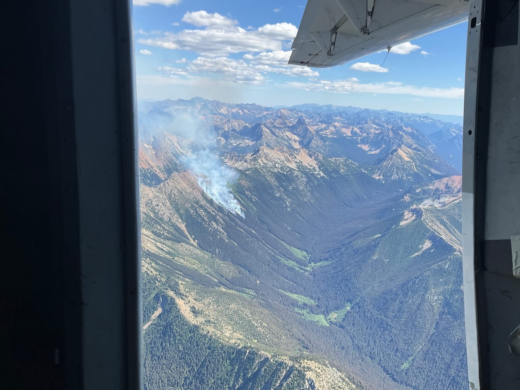 📸 Photos: Smoke rises from the East Creek Fire burning in steep inaccessible avalanche chutes in the Methow Valley Ranger District on July 29, 2025. Credit: USDA Forest Service