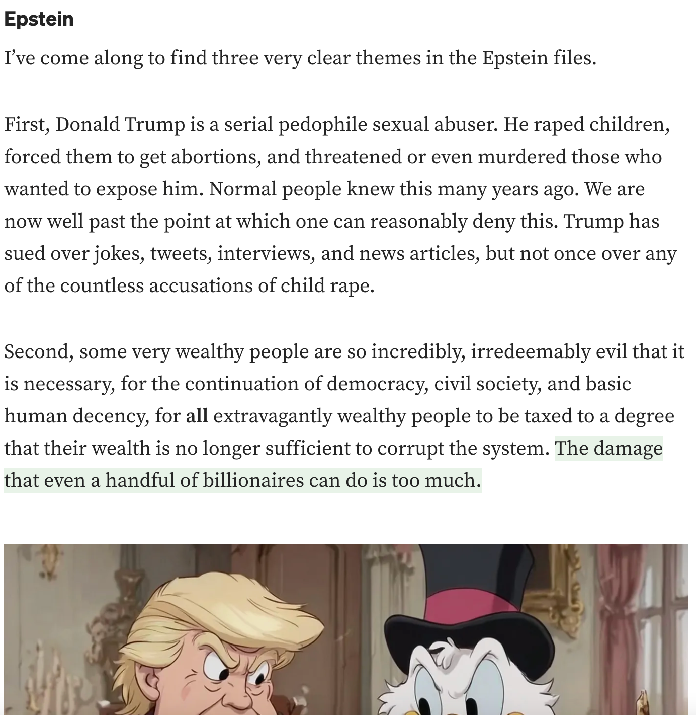 Probably the simplest reason why he has never sued any outlet or victim for defamation is that to do sue would subject him to Discovery before trial and Discovery or any form of sunlight has never been a winning move for him. Without a doubt, if the DoJ had ever followed up on what we now see are credible charges and leads way back in the 90's or even when Epstein was prosecuted the followup civil lawsuits by victims would have been hefty against Trump.